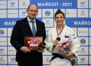 Мадина Кайсинова, выступающая за Санкт-Петербург и Северную Осетию, является воспитанницей Заслуженного тренера России Михаила Рахлина и Гераса Джиоева.