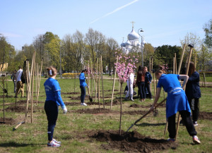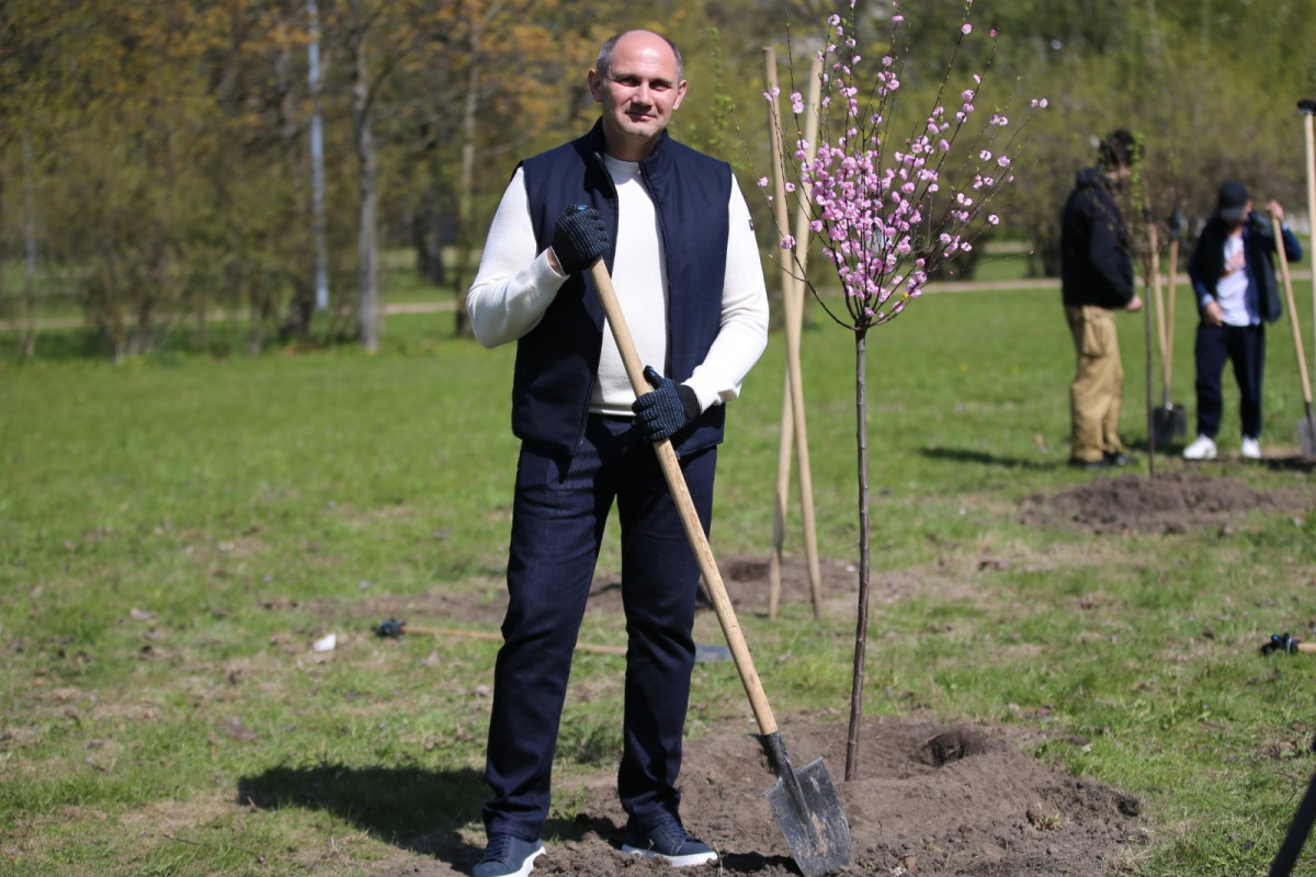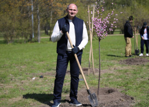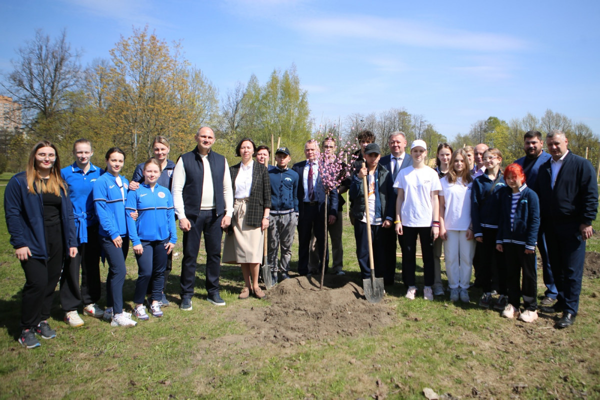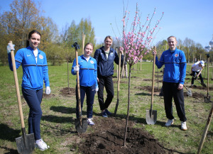 Сегодня группа спортсменов, тренеров, а также руководство спортшколы имени Анатолия Рахлина вновь инициировали акцию по озеленению парка. Ребята и их старшие наставники высадили на Аллее сакуры по обе стороны парковой дороги еще 15 молодых деревьев Кику-шидаре. Своим личным участием акцию поддержали Михаил Рахлин, глава администрации Калининского района Сергей Петриченко, директор Дирекции по управлению спортивными сооружениями Игорь Васильев, директор СШОР им. Анатолия Рахлина Маргарита Храмова и представители Администрации района. Видео.