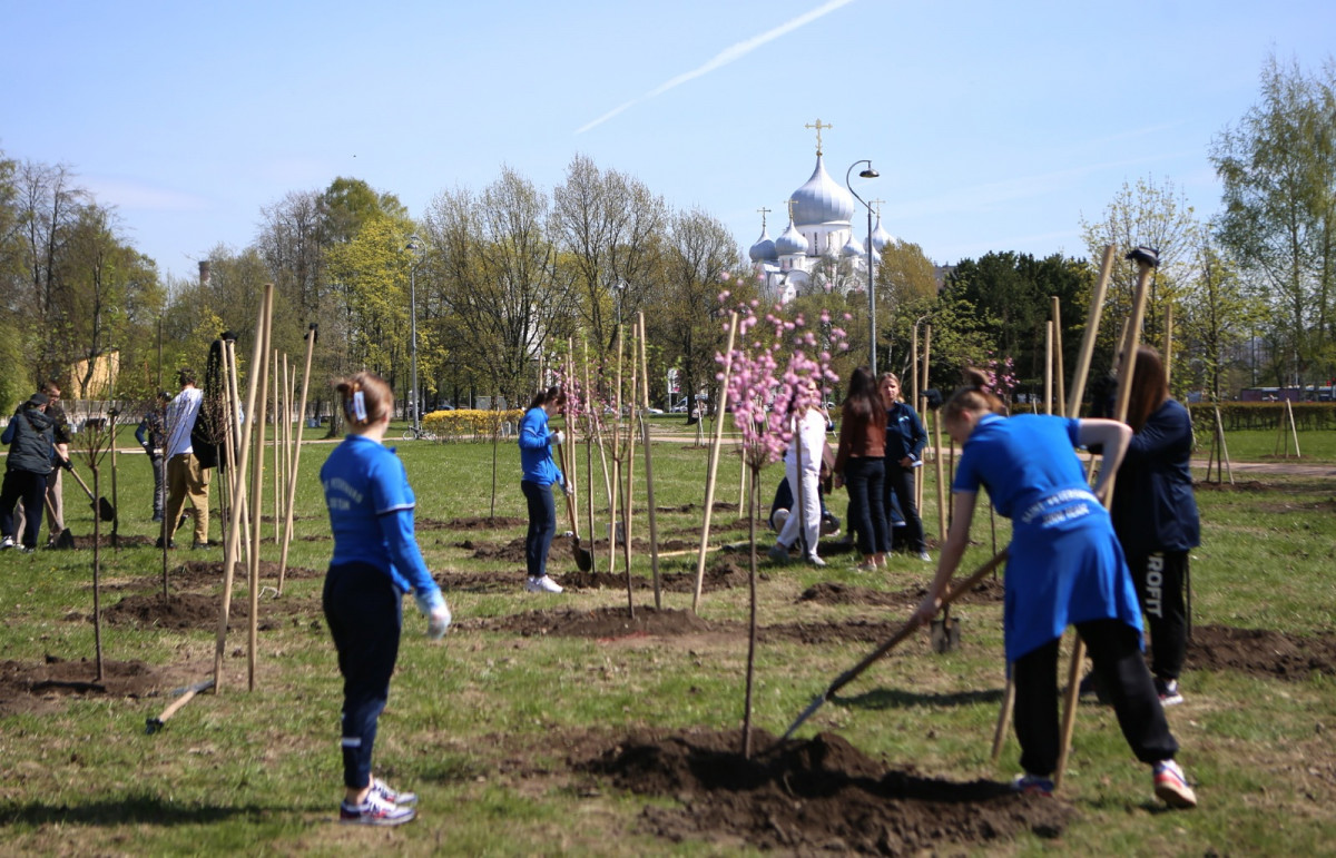 Уже второй сезон в Пионерском парке Калининского района Санкт-Петербурга в мае расцветает японская вишня Кику-шидаре. Аллея сакуры - это подарок горожанам от команды расположенной неподалеку спортивной школы олимпийского резерва имени Анатолия Рахлина и ее основателя, президента Федерации дзюдо Санкт-Петербурга и «Клуба Дзюдо Турбостроитель» Михаила Рахлина. Заложенный в сентябре 2021 года, этот мини-сад из 50 деревьев уже успел стать местной достопримечательностью и популярным у жителей близлежащих кварталов местом прогулок и фотосессий.