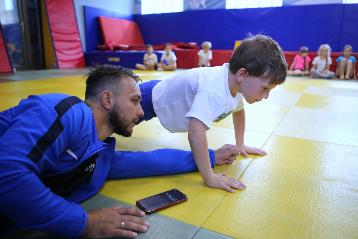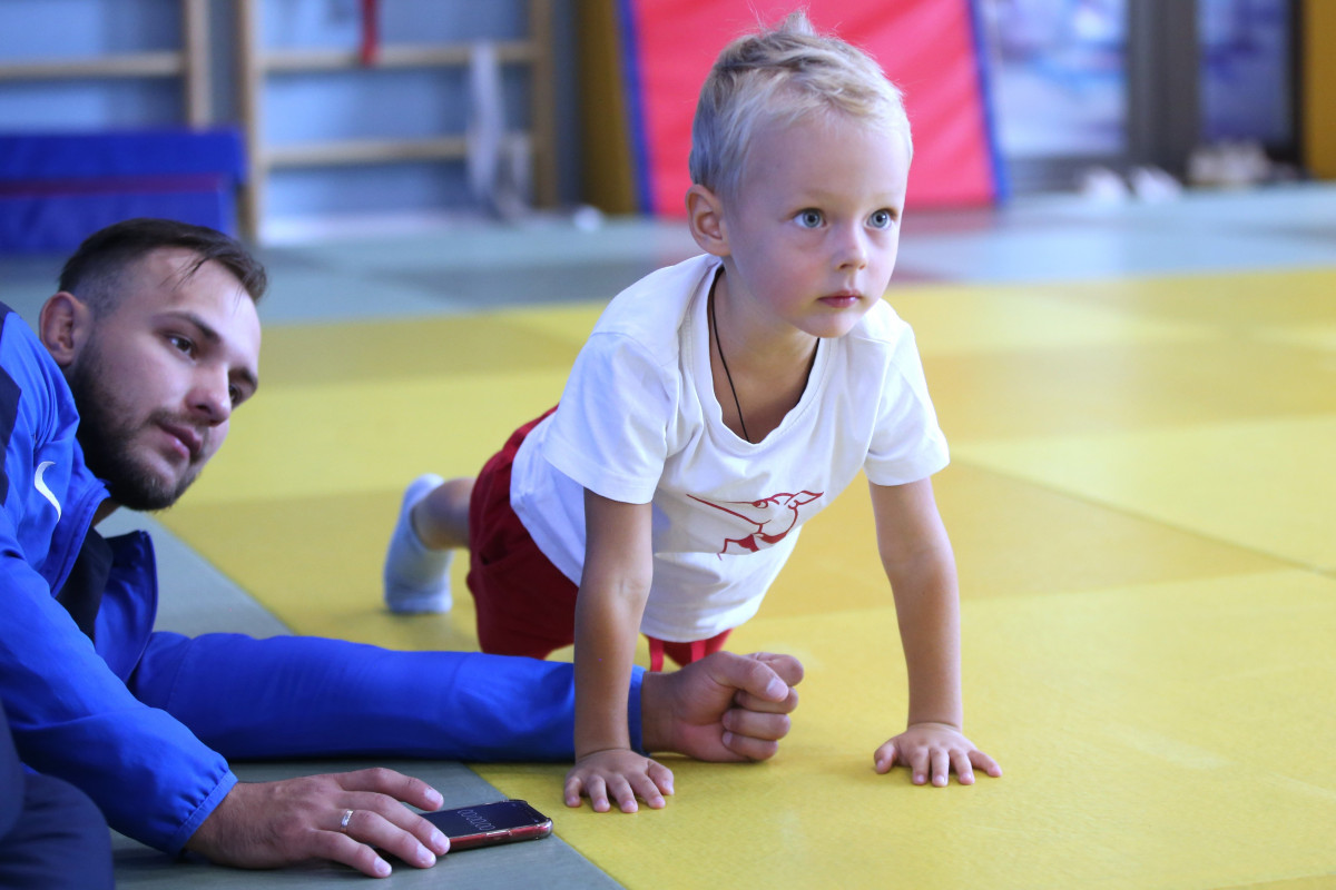 Для того, чтобы понять, насколько ребята готовы к будущим испытаниям, тренеры проверяли их общефизическую подготовку, силу, гибкость, умение отжиматься, подтягиваться, прыгать в длину. Изначальная растерянность малышей к концу занятия сменялась азартом, желанием показать себя и улыбкой. Первый шаг на пути к дзюдо для своих детей пока сделали родители. А насколько успешен будет этот путь будет зависеть от тандема того, кто вкладывает свои знания и душу и того, кто проявляет желание и упорство – от тренера и спортсмена.
