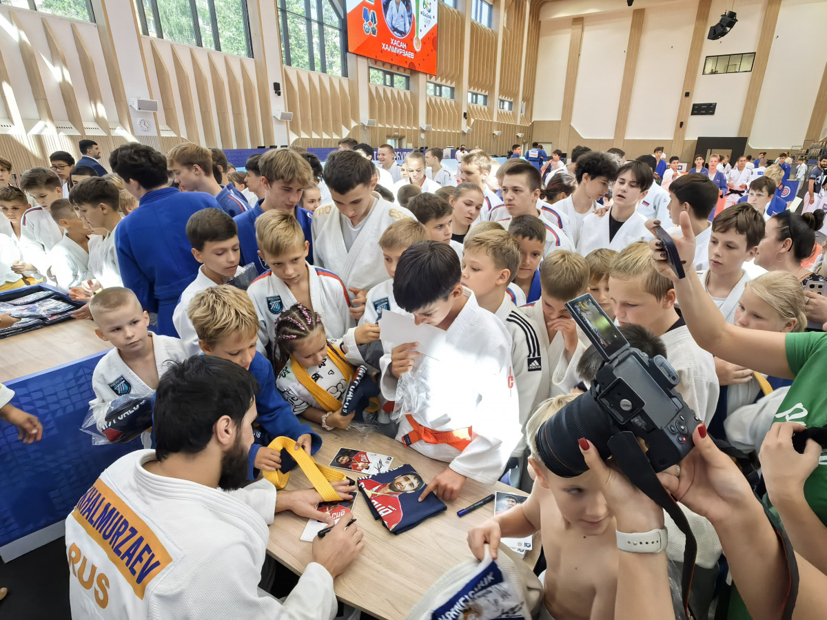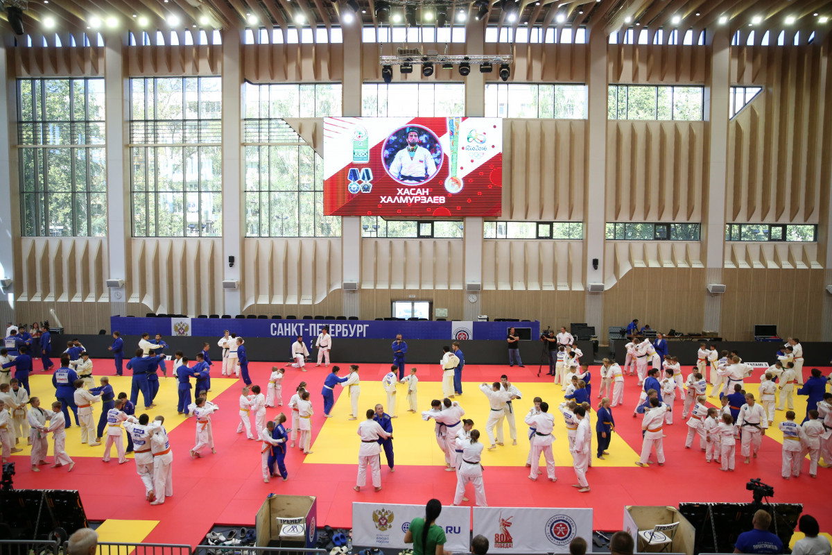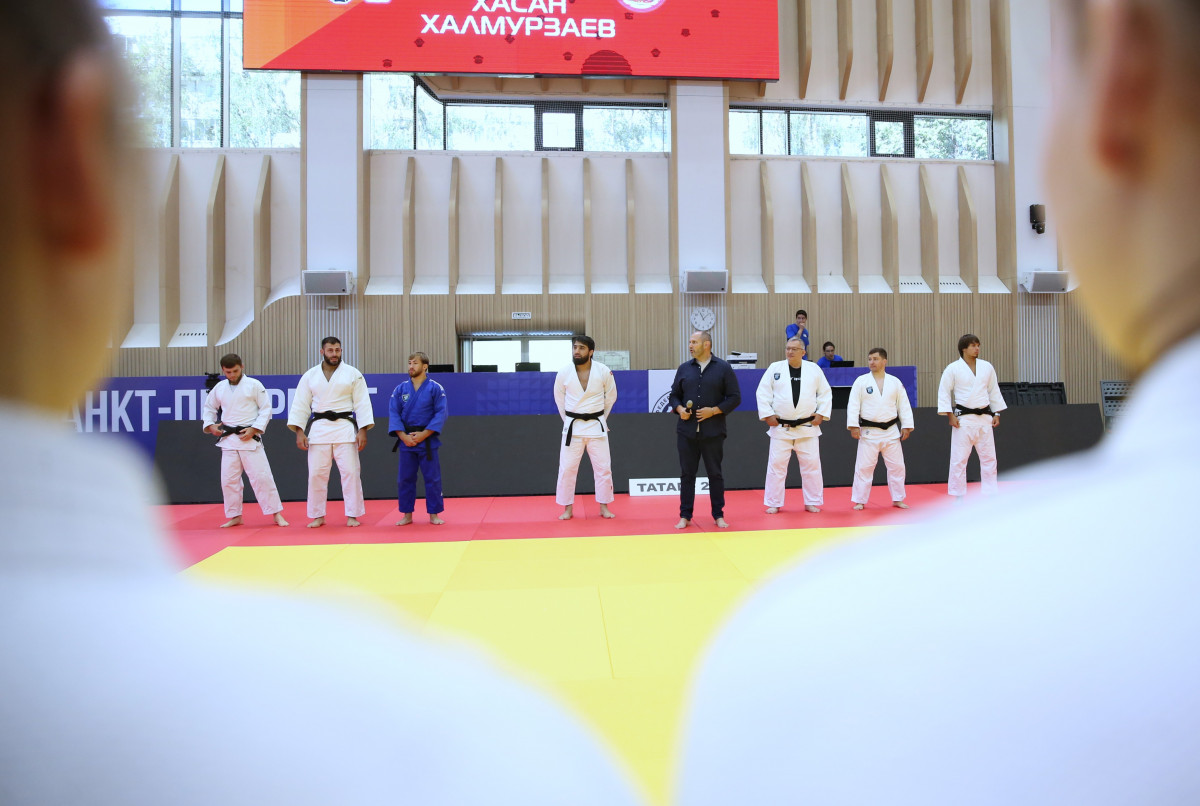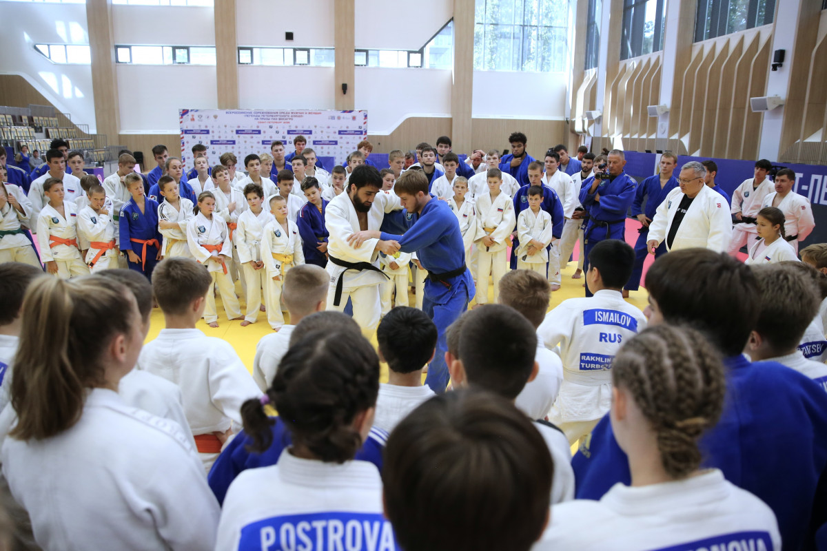 На татами Школы спорта им. Анатолия Рахлина сегодня вышли настоящие легенды петербургского и российского дзюдо: олимпийские чемпионы Тагир Хайбулаев и Хасан Халмурзаев, чемпионы мира Арман Адамян и Инал Тасоев, призер чемпионатов мира и Европы Аюб Блиев, чемпион России и победитель Игр стран БРИКС Иван Черных.