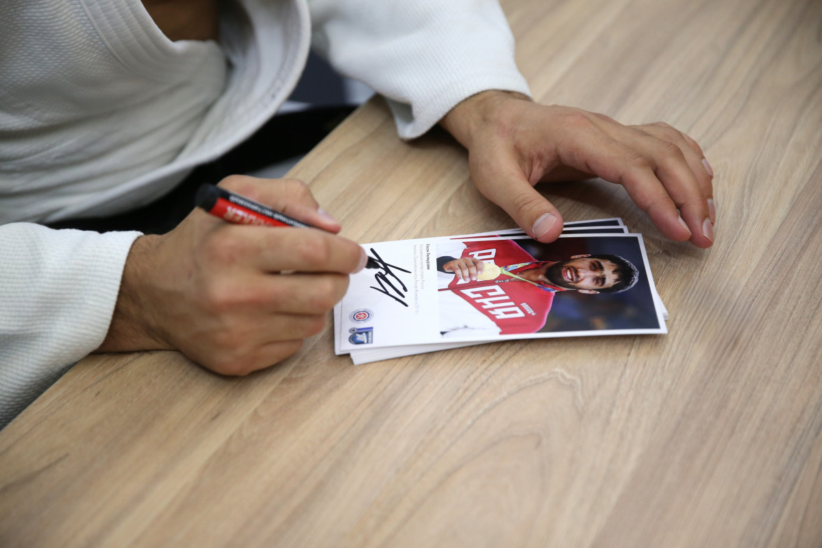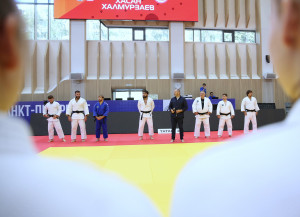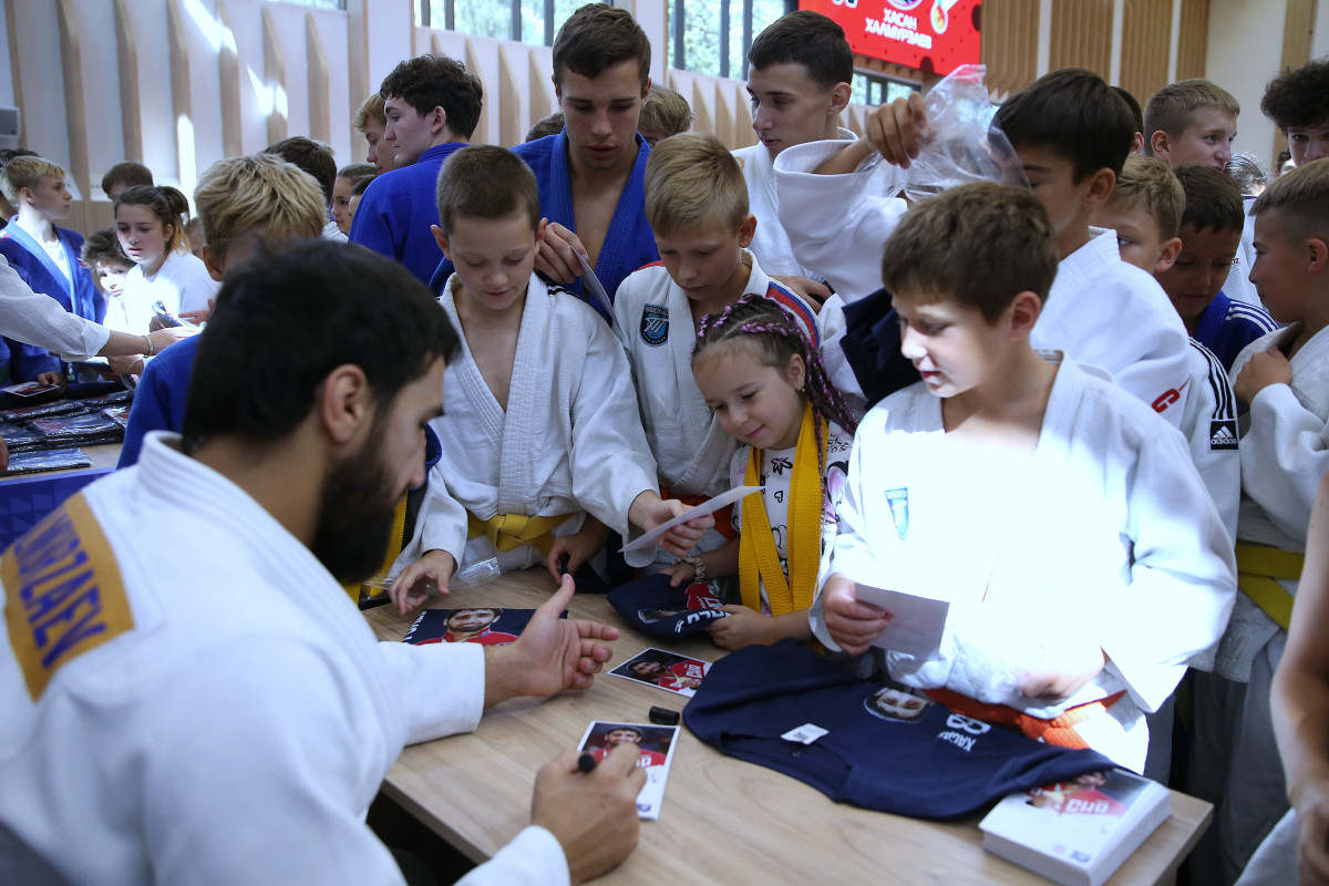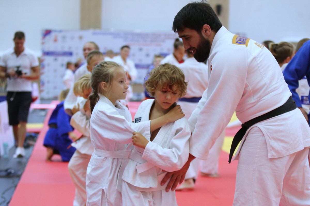 На татами Школы спорта им. Анатолия Рахлина сегодня вышли настоящие легенды петербургского и российского дзюдо: олимпийские чемпионы Тагир Хайбулаев и Хасан Халмурзаев, чемпионы мира Арман Адамян и Инал Тасоев, призер чемпионатов мира и Европы Аюб Блиев, чемпион России и победитель Игр стран БРИКС Иван Черных.
