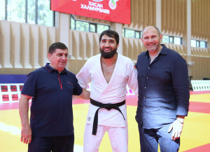 На фото: Хасан Халмурзаев со своим первым тренером, Заслуженным тренером России, вице-президентом Федерации дзюдо Северо-Кавказского федерального округа Юнусом Оздоевым и наставником в Санкт-Петербурге, Заслуженным тренером России, президентом Федерации дзюдо Санкт-Петербурга Михаилом Рахлиным. Хадижат Плиева, Михаил Рахлин, Юнус Оздоев, Инал Тасоев.