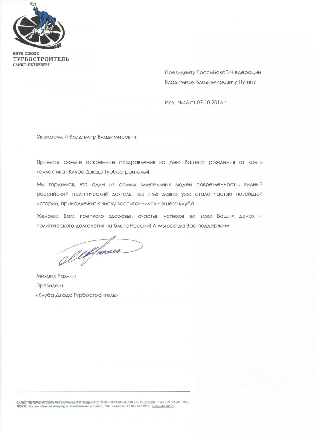 Поздравление с Днем рождения Президенту РФ Владимиру Путину Поздравление с Днем рождения Президенту РФ Владимиру Путину Дата публикации: 03.10.2016 ❮ ❯