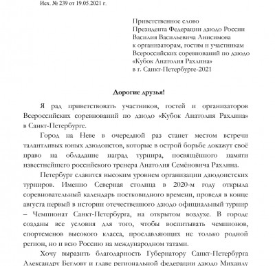 IX юношеский турнир по дзюдо Кубок Анатолия Рахлина прошел 23 мая в Санкт-Петербурге в рамках спортивной программы Петербургского Международного экономического форума-2021 в партнерстве...