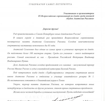 Губернатор Санкт-Петербурга вручил государственные награды и поощрения спортсменам, руководству и попечителям "Клуба Дзюдо Турбостроитель" и СШОР имени Анатолия Рахлина